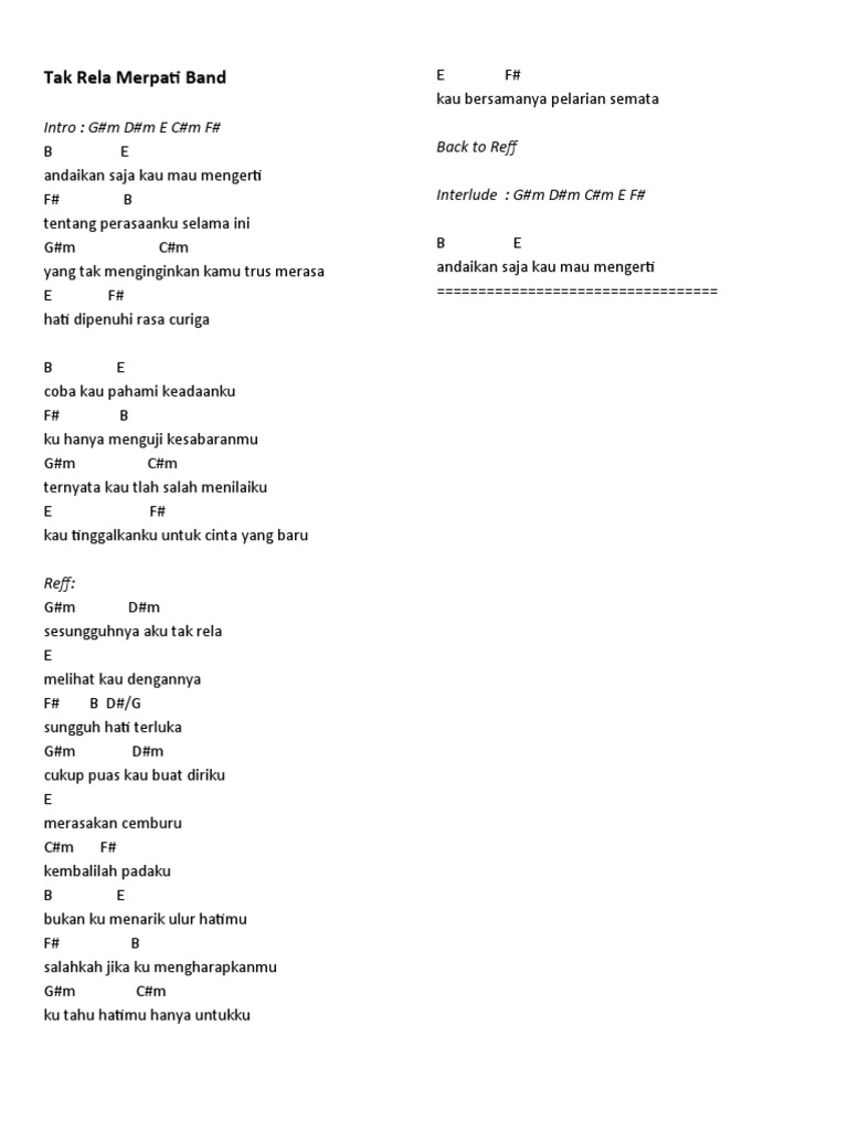 Chord Gitar Jodoh Yang Kesampaian Rollbad Stak Berjanjilah Kau Sayang Akulah Kekasihmu Sinergi Madura